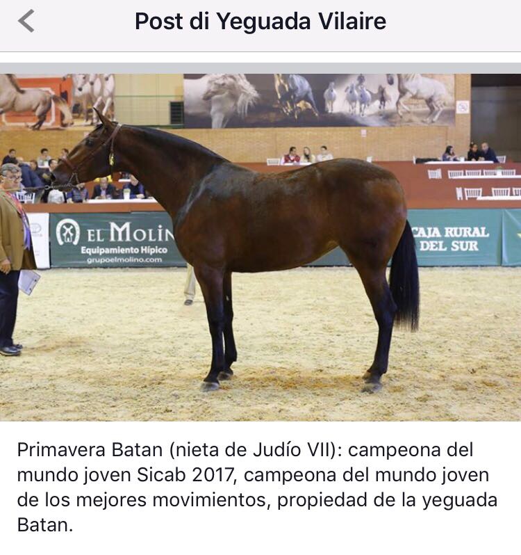 Judio VII je nepochybně jedním z nejlepších hřebců ve Španělsku. Jeho pokrevní linie je Bocado Marín García. Je mimořádně krásný, ryzí typ koně plemene PRE. Judio VII se narodil v Yeguadě Vilaire, je synem BELICO III, linie HABANERO XI, jedné z posledních větví pocházejících z linie Terry (viz PRE – Cartujano) . Judio VII je nositelem stříbrné medaile ze SICAB 2001 a SICAB 2003, SICAB 2005. Absolutní vítěz mnoha regionálních šampionátů v r.1997 – 2005. Rovněž byl šampionem na drezurních šampionátech Baleáry 2001 a 2002. Judio VII byl reprezentantem PRE na FERIA CAVALLI 2007 v italské Veroně.
